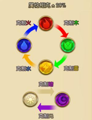 《魔法军团》每位英雄和魔物都有自己的属性,属性间相互克制,其中水克火,火克木,木克雷,雷克水,光与暗互相克制。