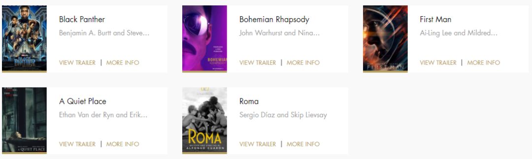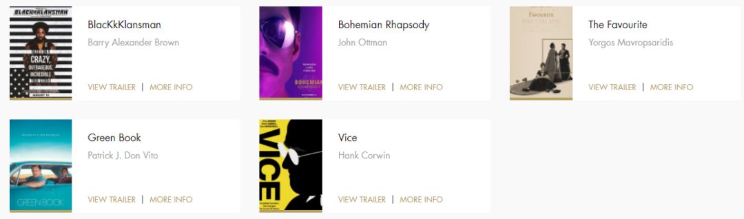 总的来说,从提名看,《罗马》《宠儿》均以10项领跑,《黑豹》以一部娱乐大作的身份突围,剩下《绿皮书》《副总统》《波西米亚狂想曲》等实力佳片紧随其后。
