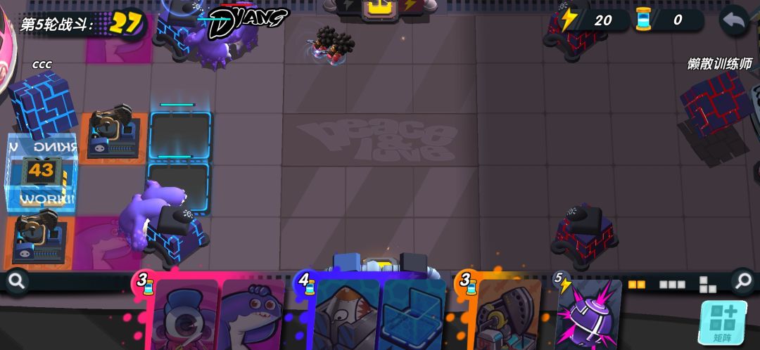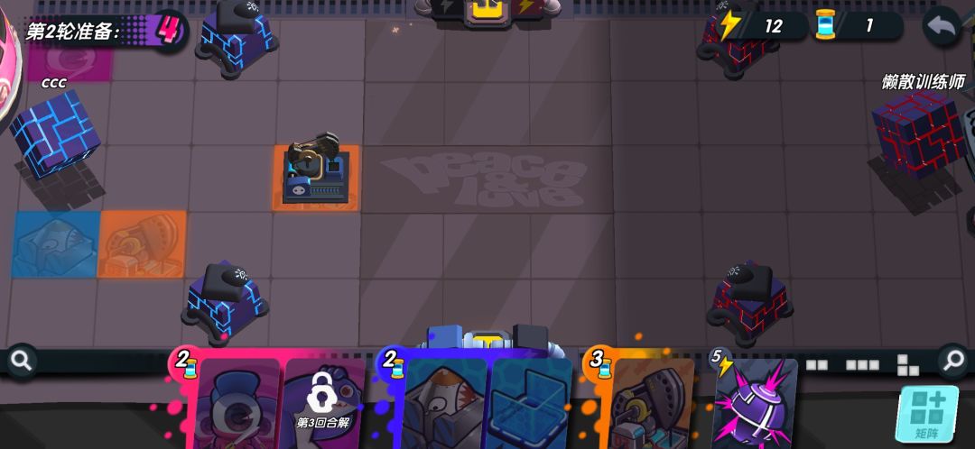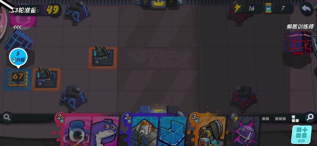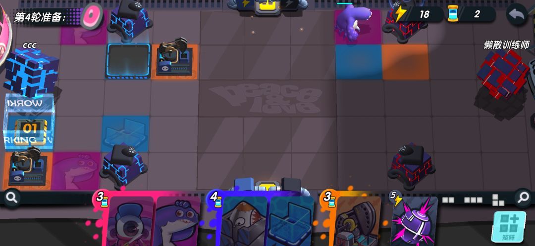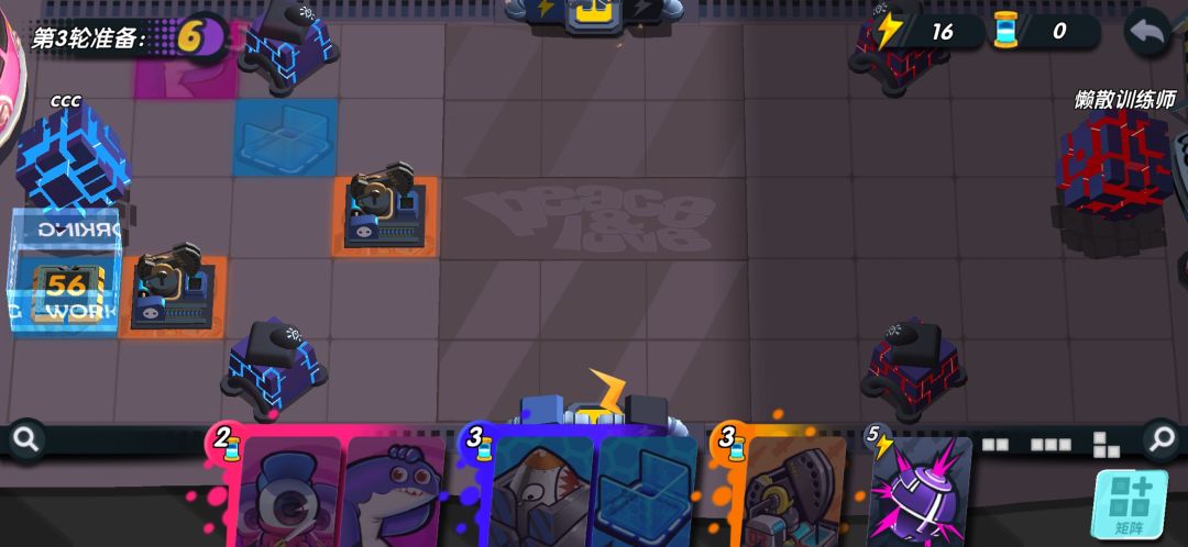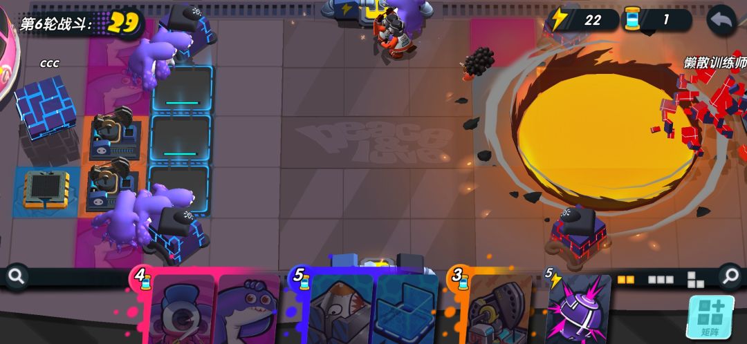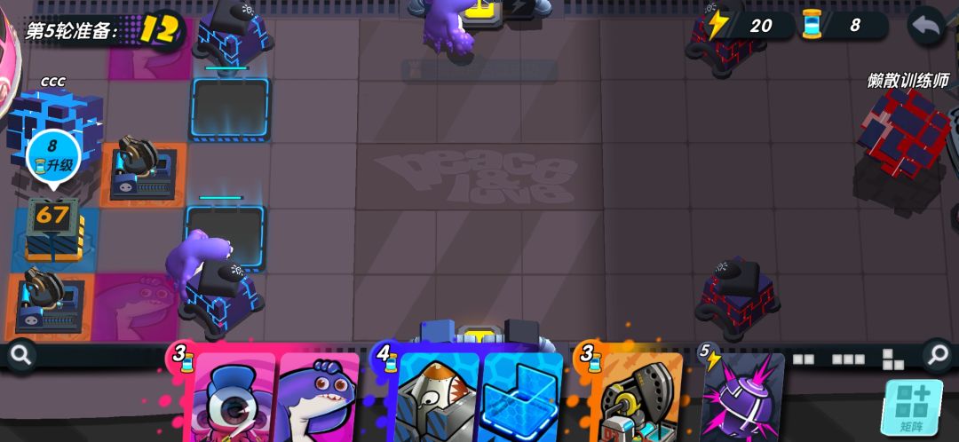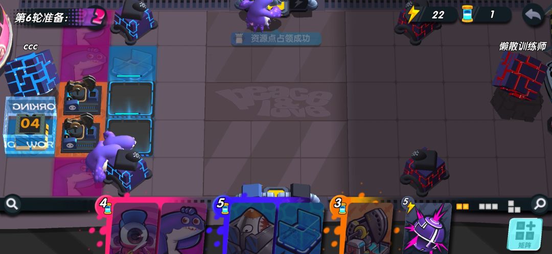 如果对面进攻力度不强,你甚至可以不放出来,就直接能屯一个胖哥到下回合,无限屯!!第五回合你可以升级你的核弹了。如果你的能量收割者脸太黑,没有给你额外能量,你可以把他俩卖掉,能量肯定够用。