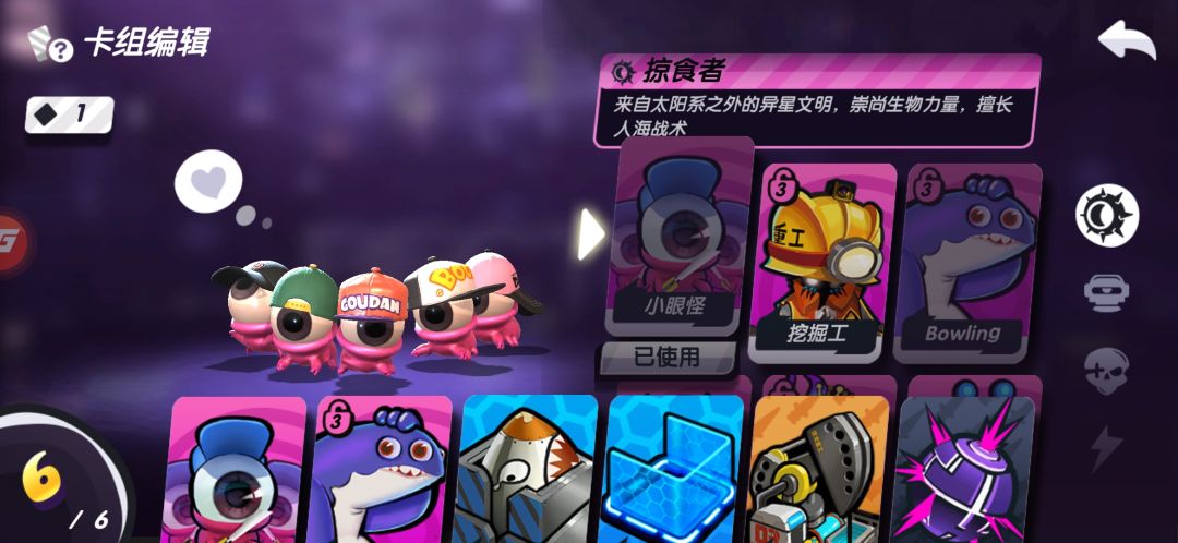 常规眼怪为什么不上来放核弹?因为核弹第二回合无法稳定升级,就算你运气好,能量收割者给了你两能量,你升级了。但是那样你的后续节奏会混乱不堪,既然是教学,我就教最稳定的!第二波