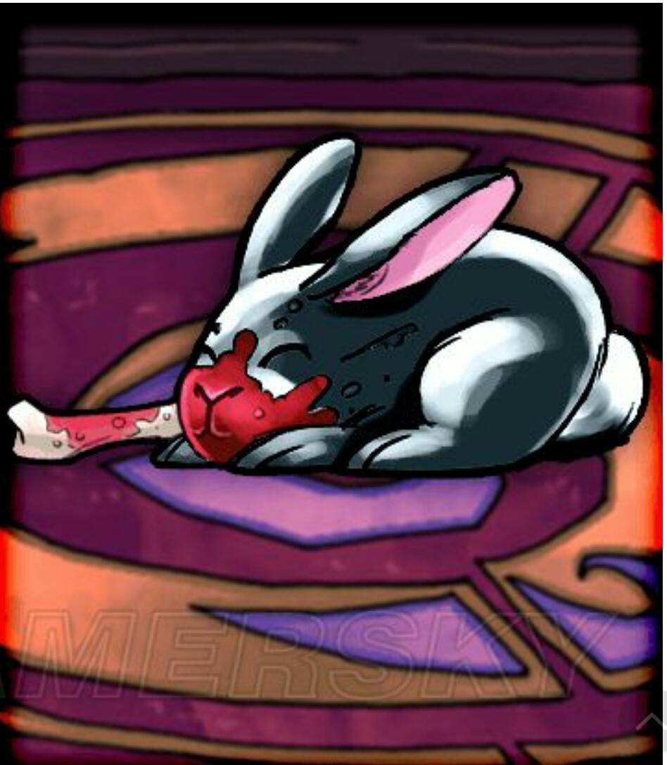 图中兔子啃着一根带血的骨头,十分残暴