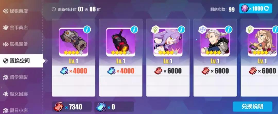 2)在置换空间中,兑换一把武器需要消耗4000个「武装共鸣」。