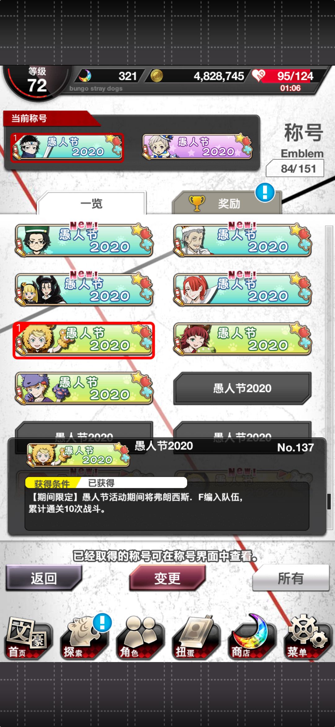为啥我的弗朗西斯和露西的称号只有一个??下面的得不到??疑惑,求解