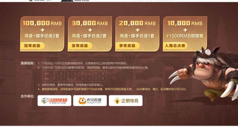 三大平台直播机会、20万税后现金大奖,超百万奖励、专属荣誉等你来挑战。赶紧报名参与首届TGA棋皇争霸赛吧,期待每一位玩家都能在这个平台上展现自己的风采!