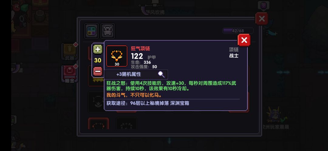 斗气项链,范围伤害毕竟我是以骚套路为主要目的,也可以不用这装备,换成加生存的防装也是可以的