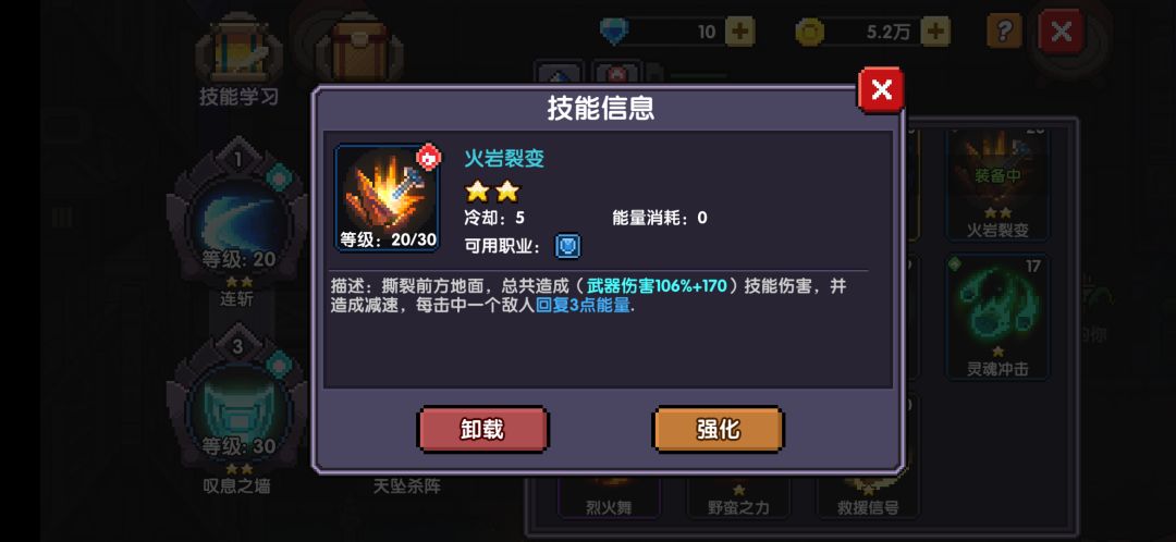 火岩,回蓝技能,一般都是打小怪时回蓝,但好在不耗蓝,可以当一个半输出技能用,打boss的时候用完连斩就开火岩,回复3点蓝量同时也输出了一些