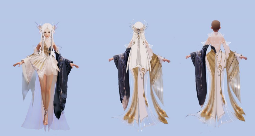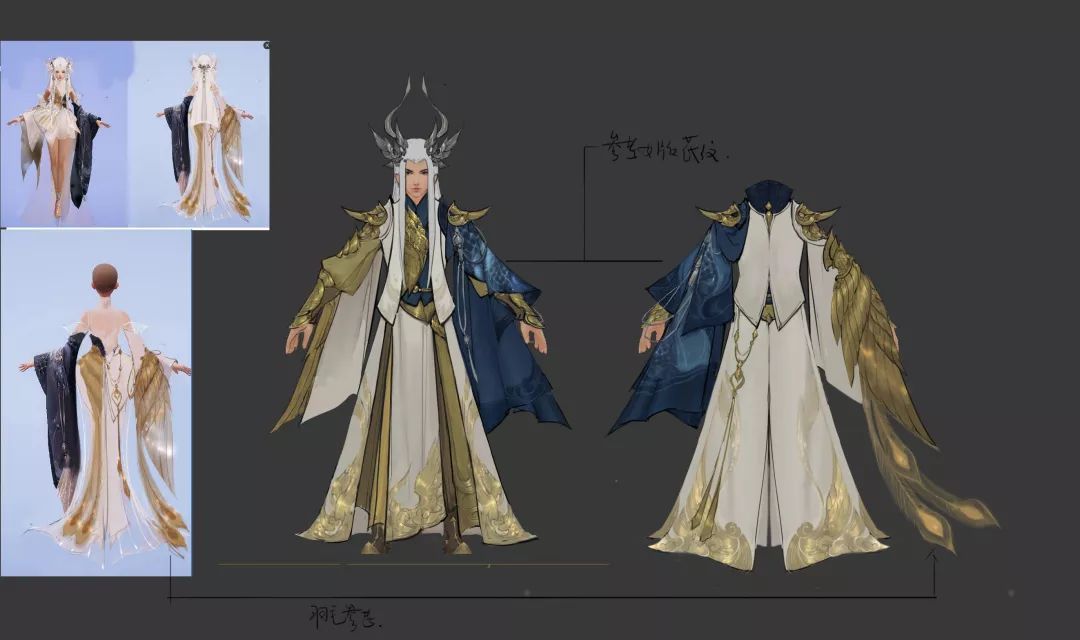 同时,为了保证这套时装最终的美观与适配更多大众审美,设计稿在建模时足足修改了六次,当努力的匠心与灵感创意结合到了一起,便有了这套犹如百灵之王-凤凰一样高贵的丹丘羽仙。