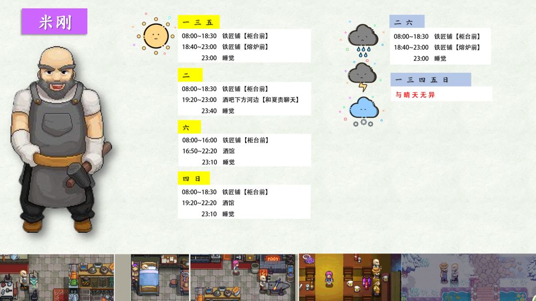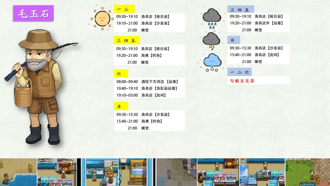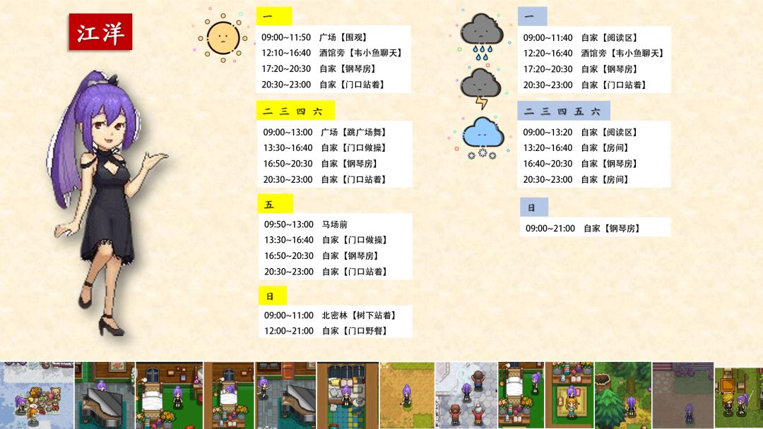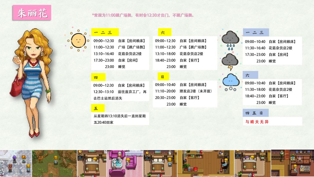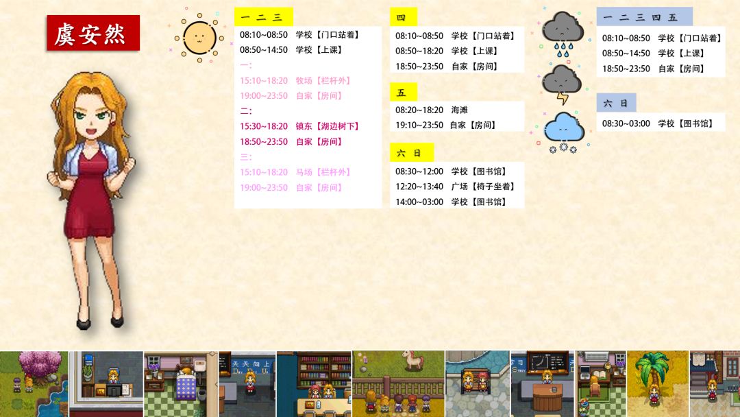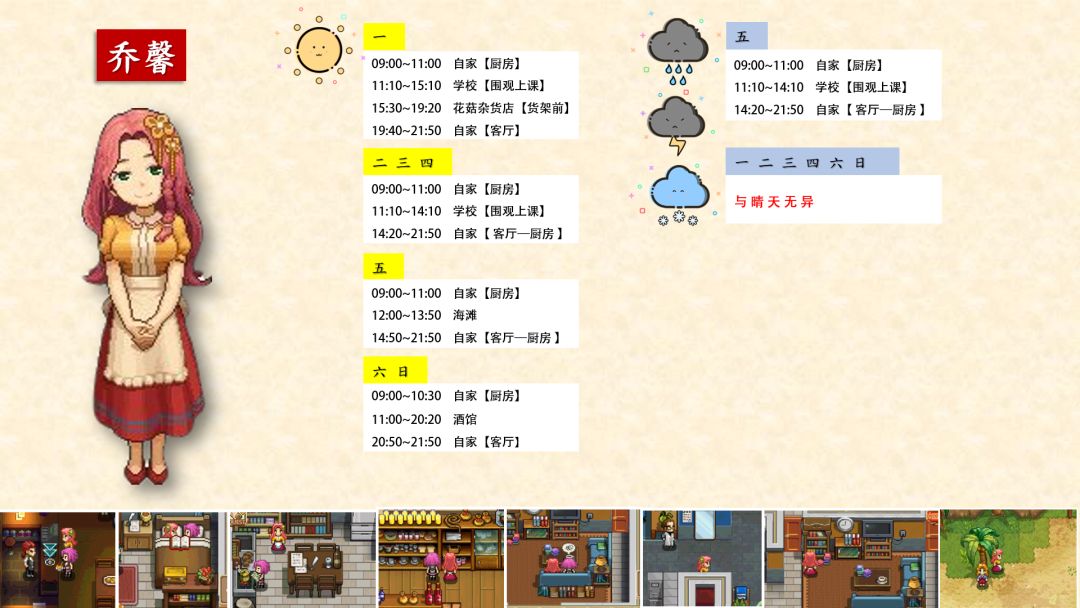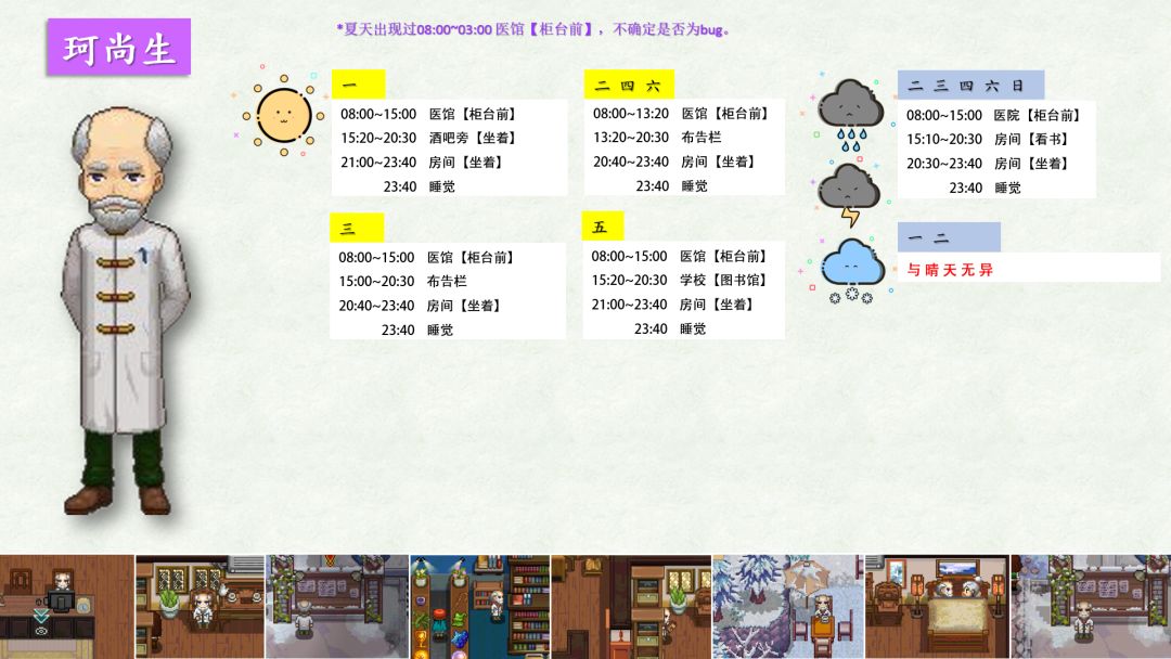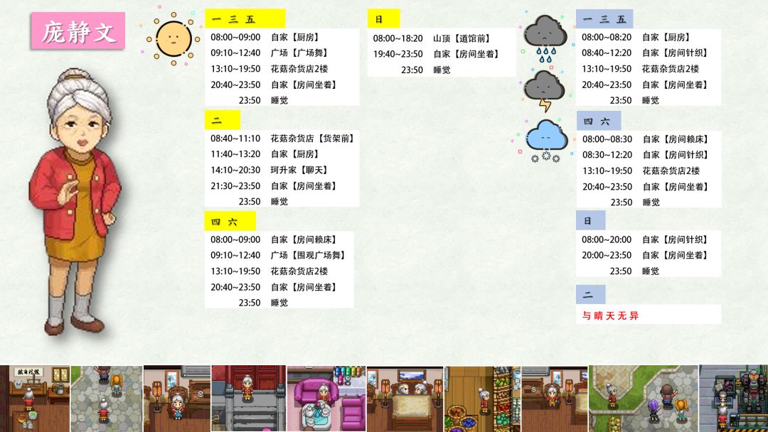 跟踪了很久,加上校正,终于将奶牛镇全村民(共32位)的每日行程写好了!!