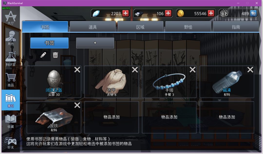 二、贫民窟一般从靶场出来到贫民窟,这段时间理应是无人的,在贫民窟我们的理想情况是摸个废铁、手镯、铁链合成头、把纸烧成碱液。打火机可带可不带,格子多可以多带个铁链,看自己选择。这时候理想情况如下图