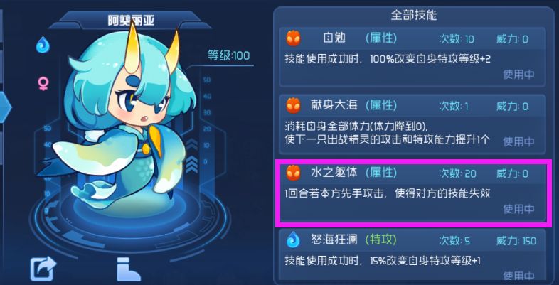 阿葵丽亚,拥有优秀的种族值,水之躯体使他成为谱尼封印等pve,萌新必练精灵之一。