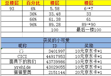 回帖踩中总回复数乘指定幸运百分比的楼层,即可获得京东卡一张,如果总回复数乘幸运百分比后出现小数点,则以四舍五入后的整数为准。活动截止为止,楼层的最后一名回复者送出20元京东卡一张