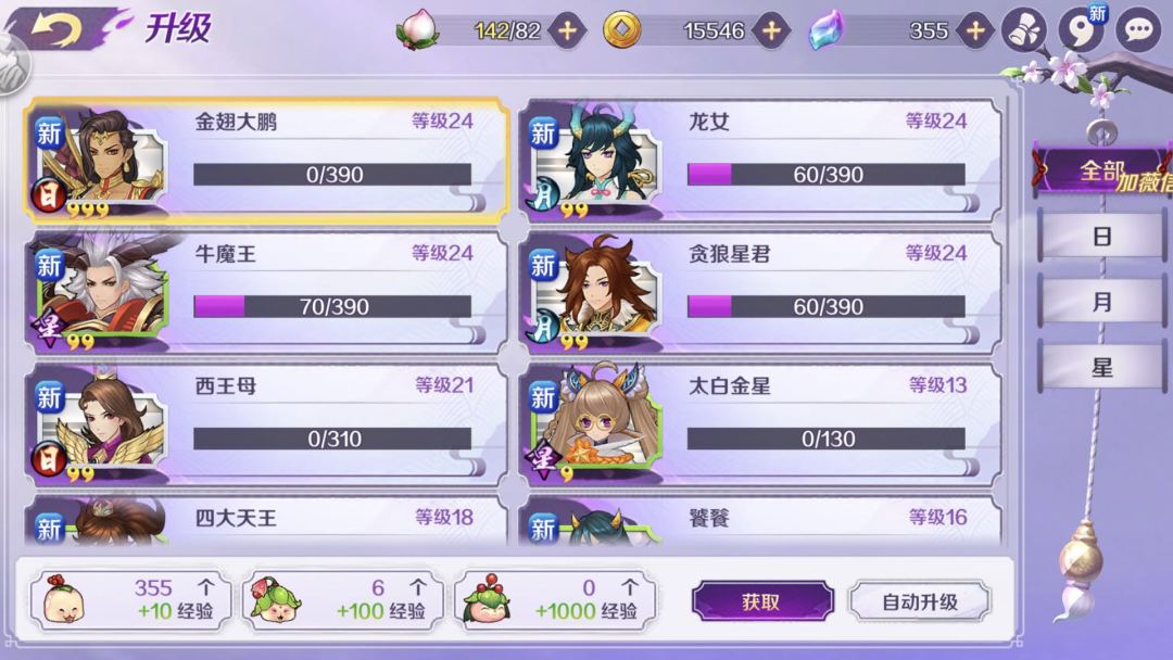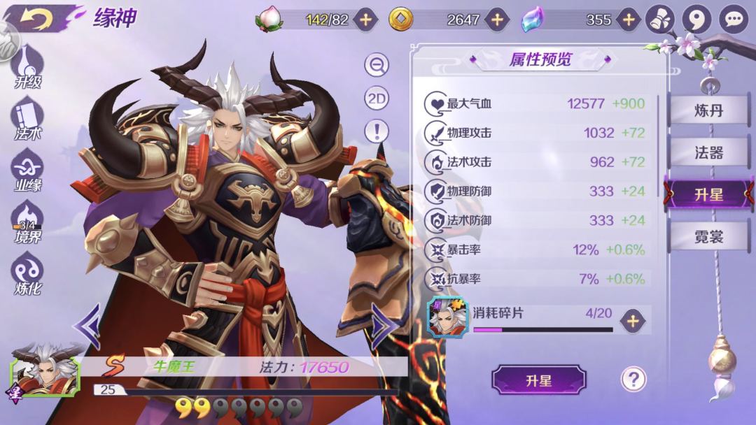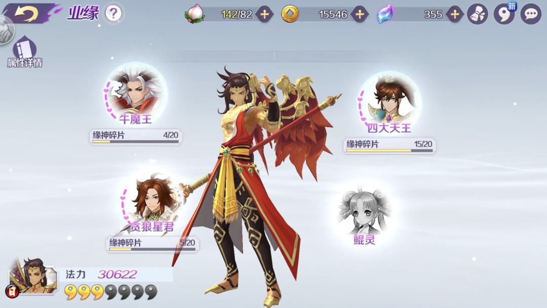 每一位缘神均拥有自己的神格和星级,其不仅影响自身的属性能力,还将影响对战中敌方的伤害和控制效果。在具体战斗中,如果缘神的神格和星级均小于敌方,那么技能伤害和控制效果均会降低,如果其中一个条件小于对方,则按照一个神格对应2个星级来进行差异弥补,举例说明,如贪狼星君(S级3星)攻击太白金星(A级6星),当差异按照规则进行弥补之后,贪狼星君的攻击和控制效果都会降低。因此玩家在进行缘神培养的时候就要更有针对性了,神格越高的缘神其碎片获取难度越大,如果在有限的资源内星级难以进一步提升,反而不如用心培养那些易获得碎片的低神格缘神。此外每位缘神还拥有四名业缘缘神,业缘缘神提升自身星级后,主缘神就可以提升和他的业缘等级,业缘等级越高则给主缘神提供的属性加成越强,不同业缘缘神为主缘神提供的属性类型也各不相同。