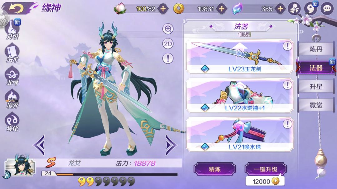 在游戏中每位缘神均拥有三件专属法器,升级法器可以提升气血、物理攻击、法术攻击、物理防御和法术防御等属性,升级需要消耗金币,而且越到高等级金币的消耗量越大,因此玩家在升级前一定要想清楚该缘神是不是你近期主玩的缘神,否则浪费大量金币进行法器升级后弃之不用将对其他缘神法器升级带来很大影响,简而言之就是好钢用在刀刃上,特别是前期绝对要精打细算。此外法器还可以进行精炼,精炼需要消耗对应的精炼材料,当法器的精炼度达到一定数值之后便可实现品质升级,法器是提升缘神战斗力的重要元素之一,主玩缘神绝对值得大力投入。