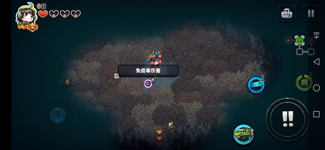 解决方法是快速拿到免疫毒和免疫范围伤害的徽章或拿到消灭敌人得到护盾(可以加一个消灭敌人拿到红心,一级就好)这里推荐前者,后者是用来过渡的