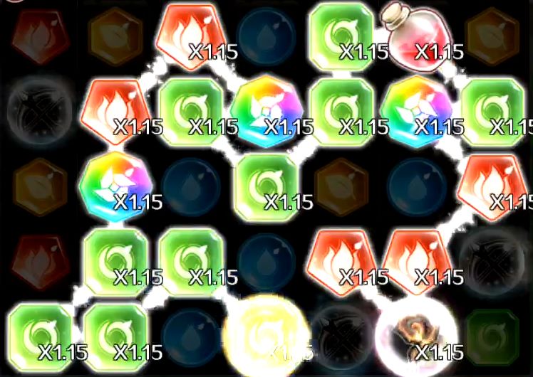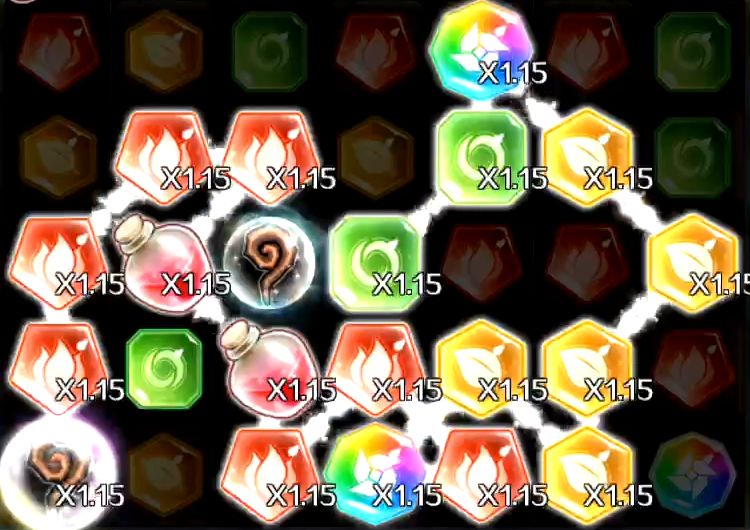 利用杖爆珠同时引爆两颗两颗锤爆珠,锤爆珠有个看脸的特点要比箭爆珠要好,有比较大几率消除珠子后,上方掉落的替补珠里会有锤爆珠出现,有些高combo的情况就是引爆锤爆珠后,上方掉落珠子里会继续有锤爆珠出现,脸白的情况下会连着出好几个锤爆珠!不过显然,我这次没有那么好运气,只给我掉了普通珠子。