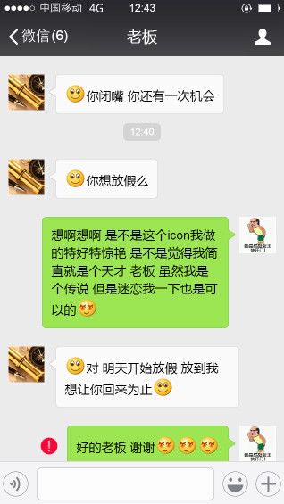 如你所见,老板成功的把我拉黑了。可是纵观这些icon,我觉得还是我的更恢弘壮大,脱颖而出!老板一定是为了让我这个天才好好放假不忍打扰,对么?!