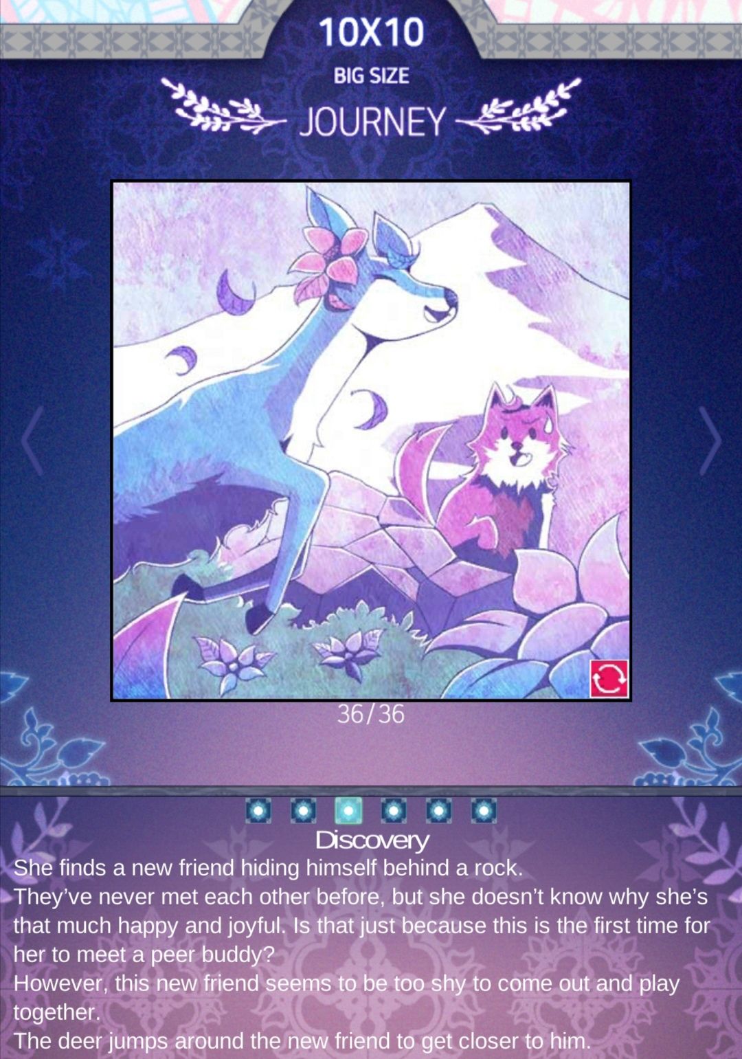 然而,这个新朋友似乎太害羞了,不敢出来一起玩.鹿绕着新朋友跳来跳去,想要靠近他.