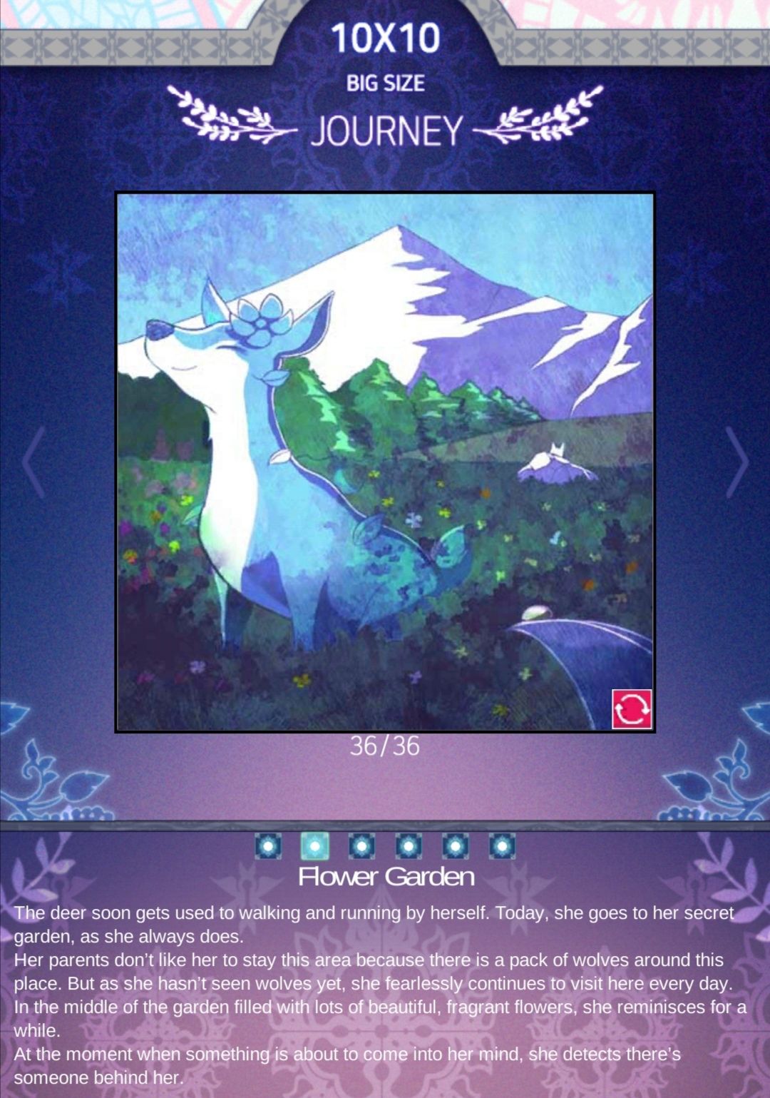 鹿很快就习惯了自己走和跑,今天她像往常一样去她的秘密花园.她父母不喜欢她呆在这里,因为这附近有一群狼.但由于她还没有看到更糟的情况,她每天都无所畏惧地继续在花园.花园的中央开满了许多美丽的芳香的花,她沉思了一会儿.就在她想些什么的时候,她发现身后有人.