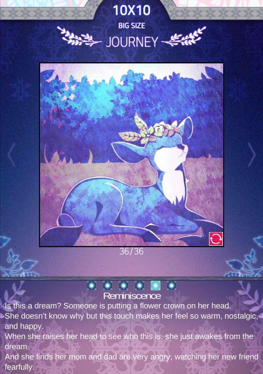 这是一个梦吗?有人给她戴上花冠,她不知道为什么,但这种触摸让她感觉很温暖,怀旧和快乐.当她抬头想看这是谁,却从梦中醒来.