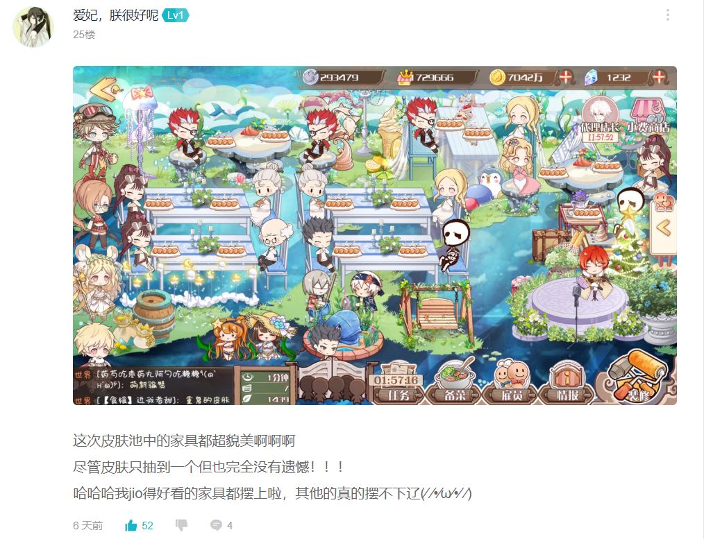 哇!点赞数有52个,恭喜这位御侍获得经营达人奖(鼓掌!!)