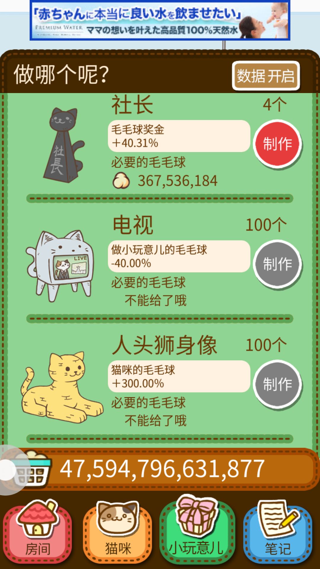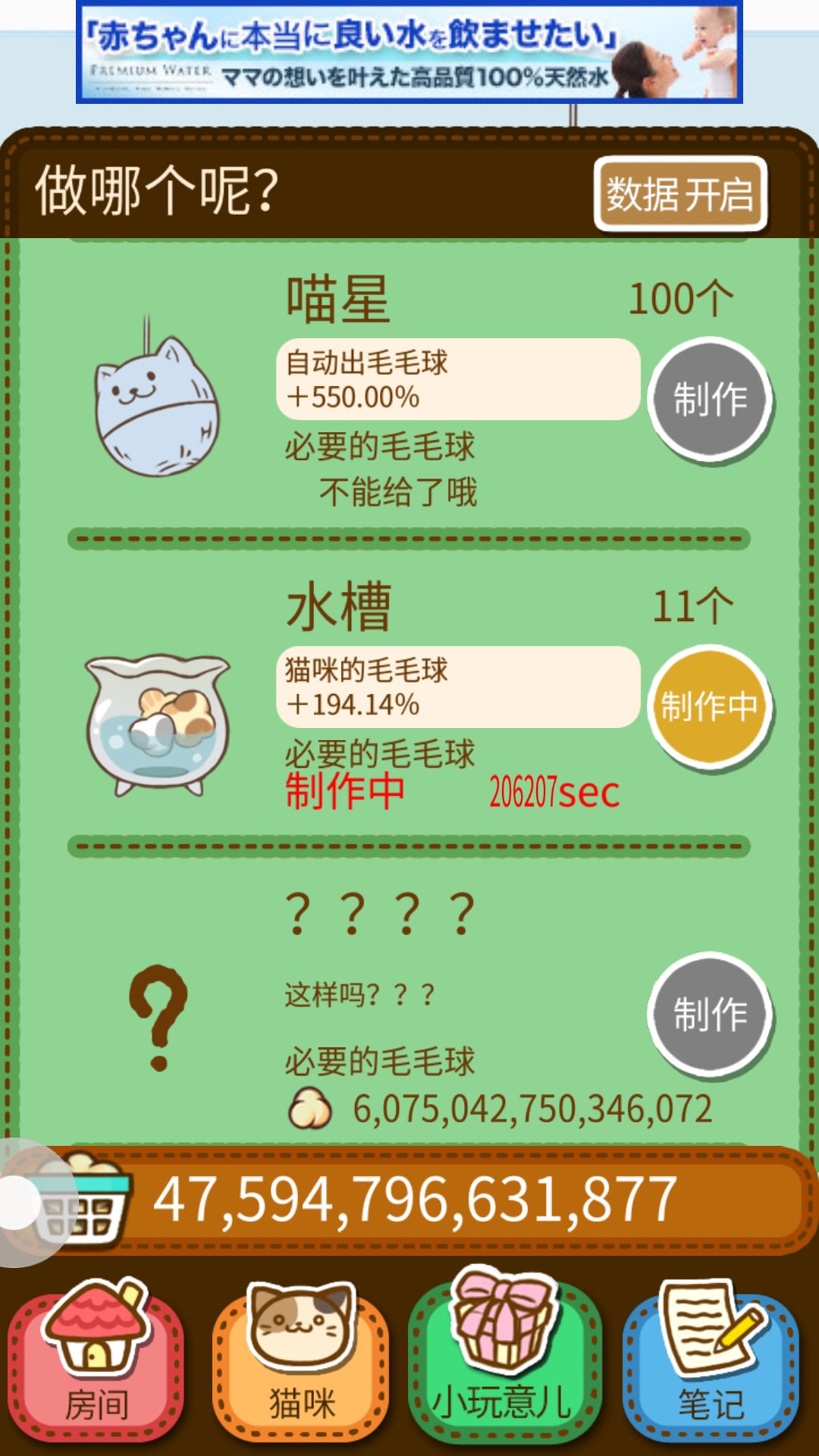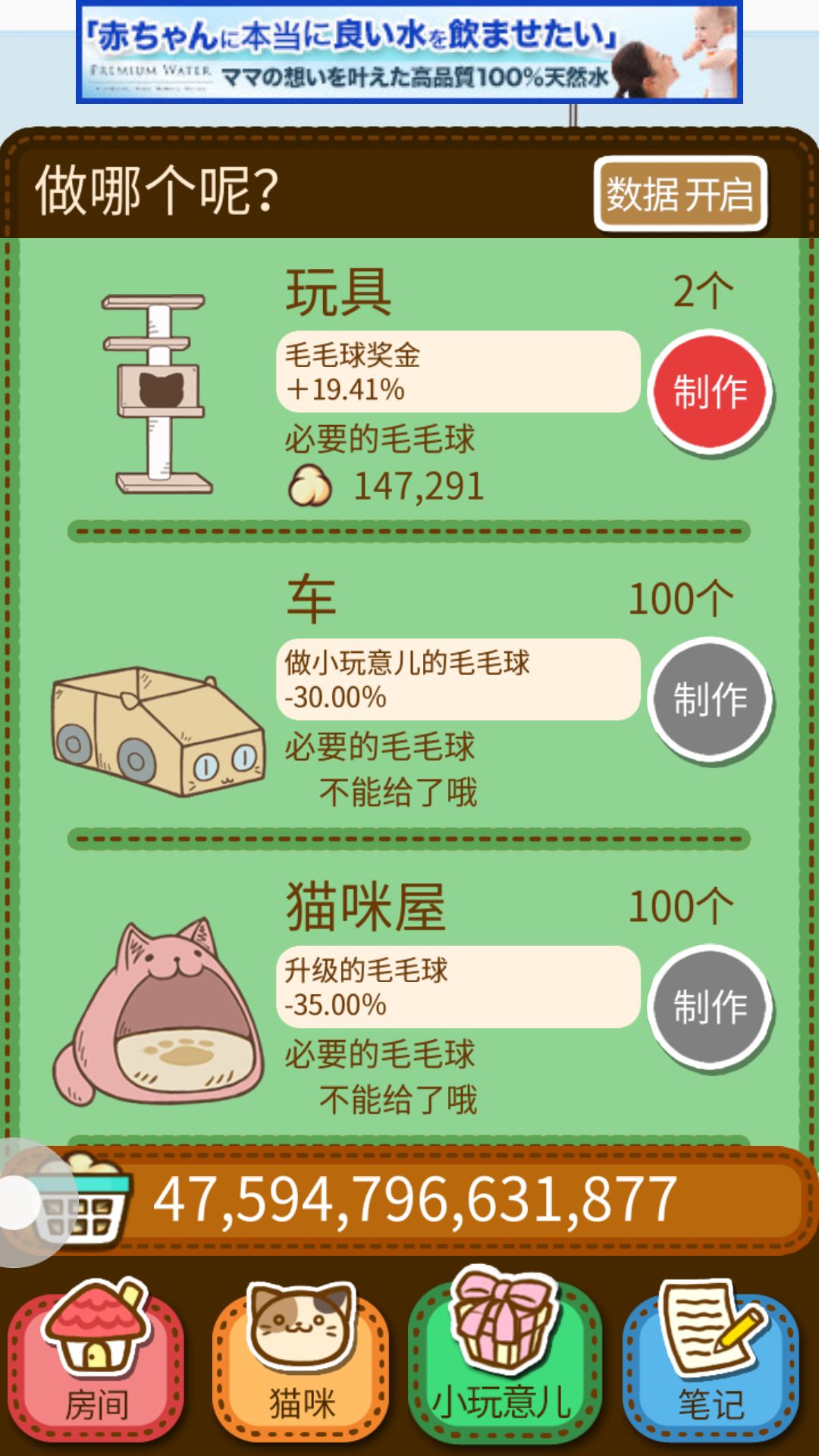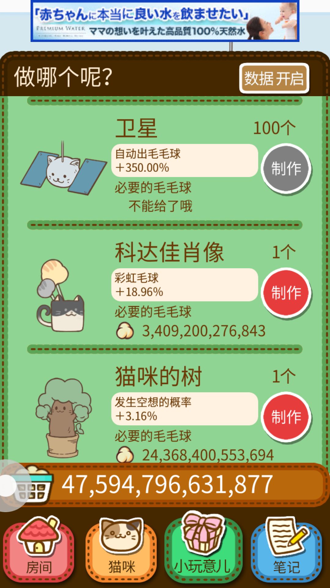 小玩具到人头狮身 或许卫星那里 如果想升级 会有点难所以要开始攒钱买猫咪