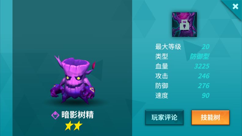暗影树精和丛林树精原本是两兄弟,由于受到黑暗魔法的侵蚀从而加入邪恶阵营。初始为2星,防御型使徒。1技能就带禁锢控制;2技能可全体加防或者清除目标增益;3技能均为受击时被动触发,可减少攻击者的增益效果或者对攻击者进行反击。