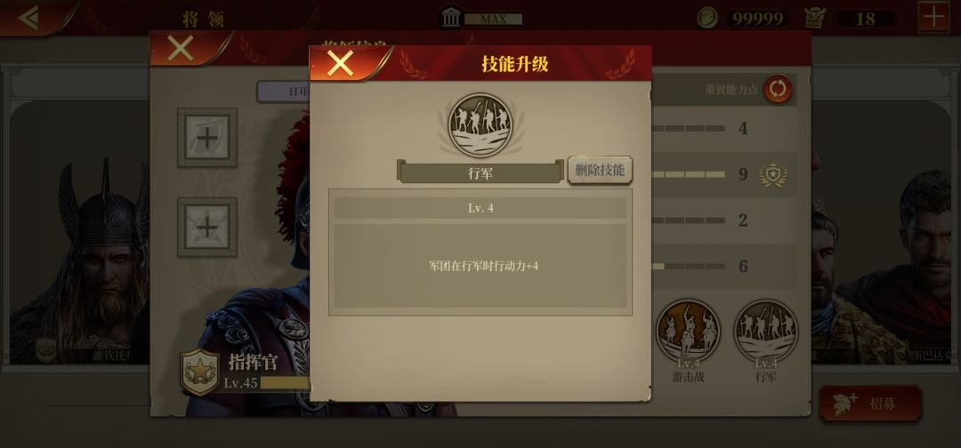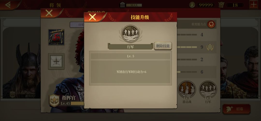 已经是说从四级行军升到五级行军额外还可以再加一点行动力