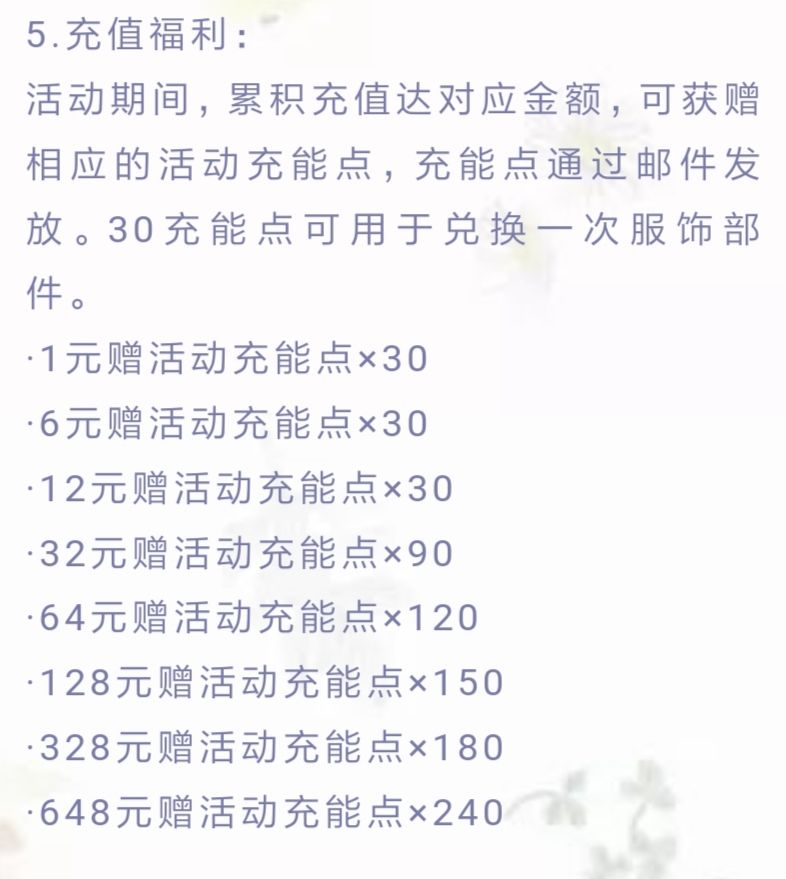 也就是说,充的越多越不划算。不过,还是要看自己的承受能力,自己可以感觉一下一个部件在你心里可以值多少钱?用这种方法来充钱会更合理些,没必要为氪而氪,也没必要看到好看的也忍着。