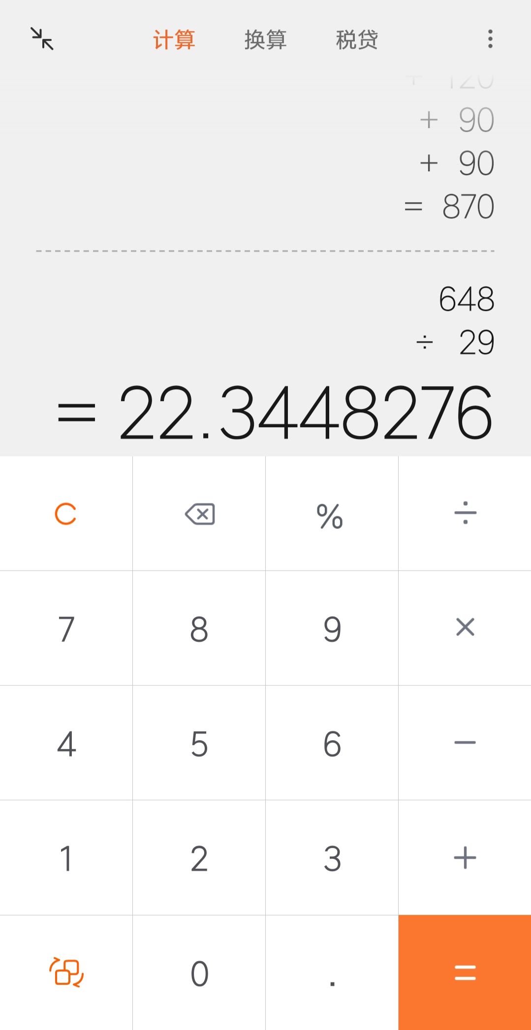 充648元平均一次价格:648÷29=22.3448