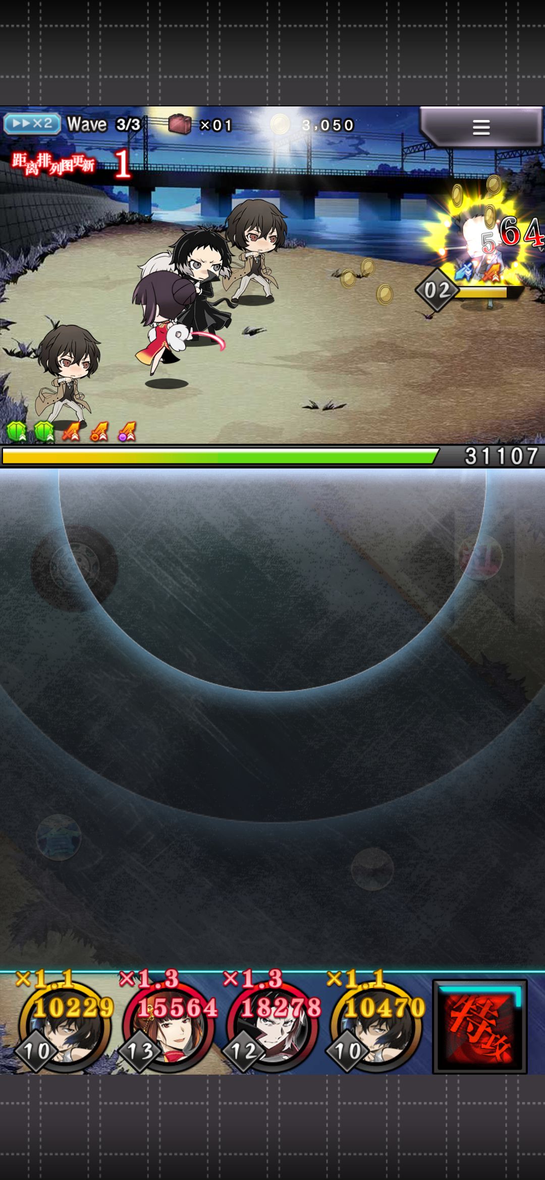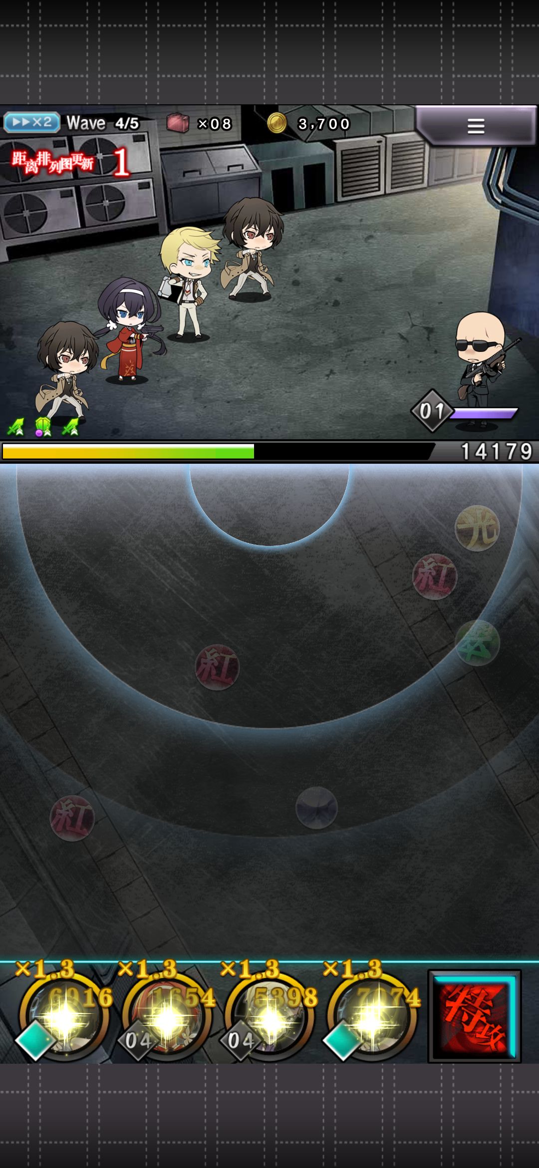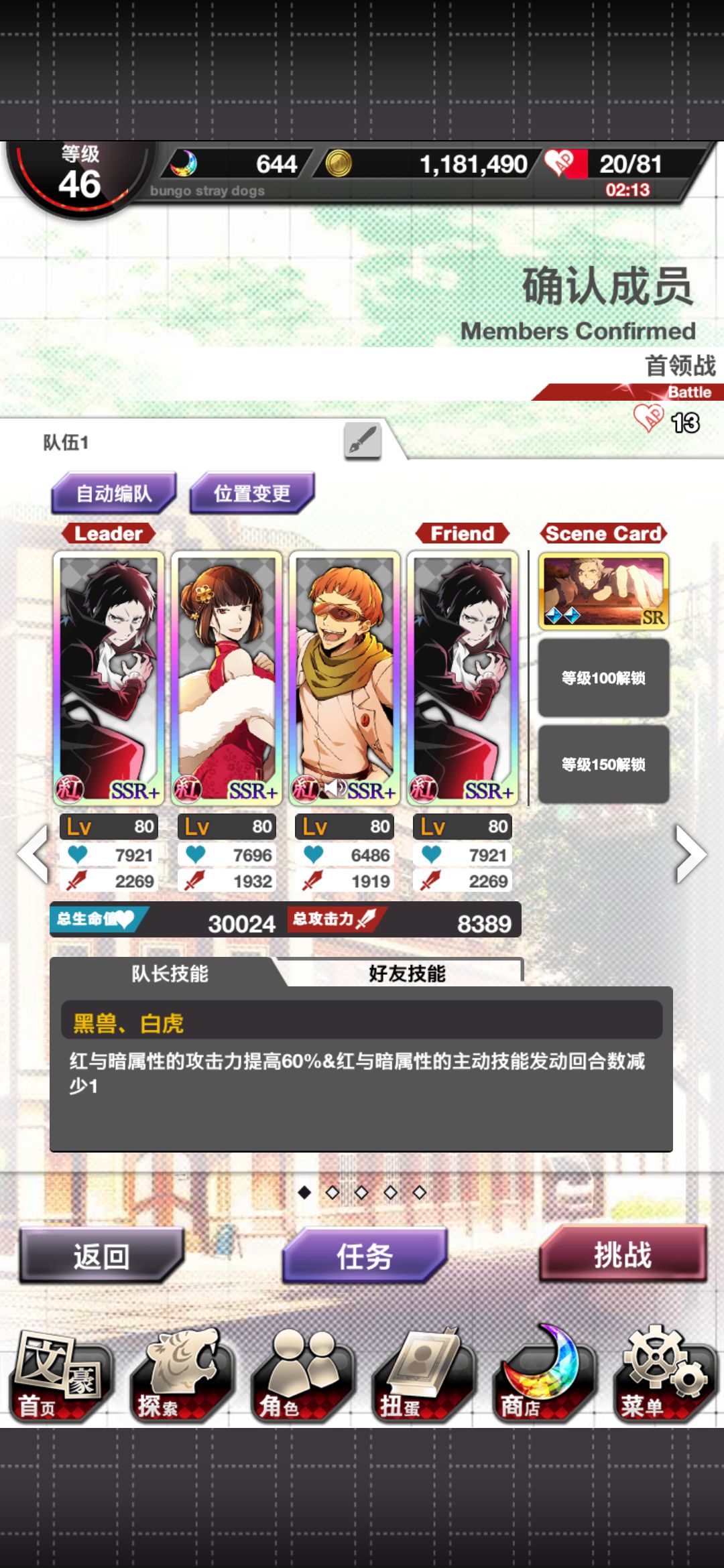 目前我认为强度最高的阵容就是芥川(队长)+晶子+随机一红(建议红敦)+芥川(队友),就像这样