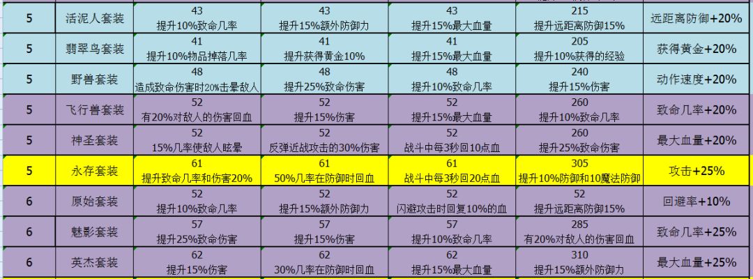 套装属性大全 --ZERO丶盛夏