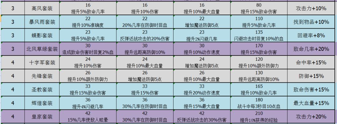 看下面的套装属性大全