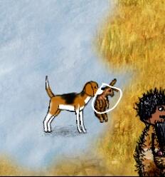 小猎犬,叼的兔兔好像娃娃啊。等等,兔兔还在流血。