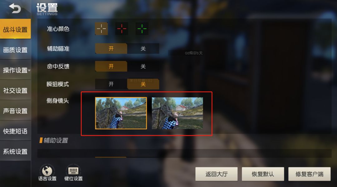 另外,现在荒友们可以在设置中切换不开镜时侧身瞄准的镜头模式了!游戏中默认的是侧身探头不放大的模式,各位荒友可以根据自己喜好来设置。
