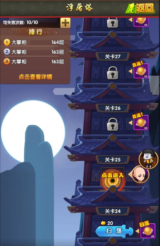 1. 浮屠塔通过战斗可以获取奖励。类似传统游戏的爬塔。