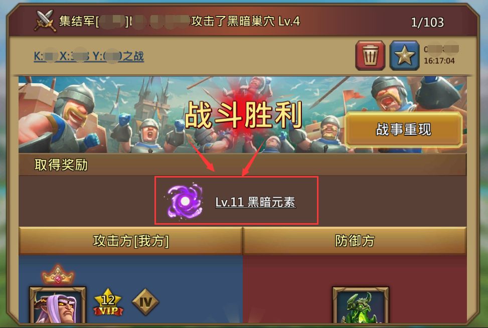 地图上遍布黑暗巢穴,玩家可选择一个进行侦查与集结攻击,侦查后可根据巢穴里面的兵种,选择相应克制的兵出战,集结成功后可获得相应黑暗元素。