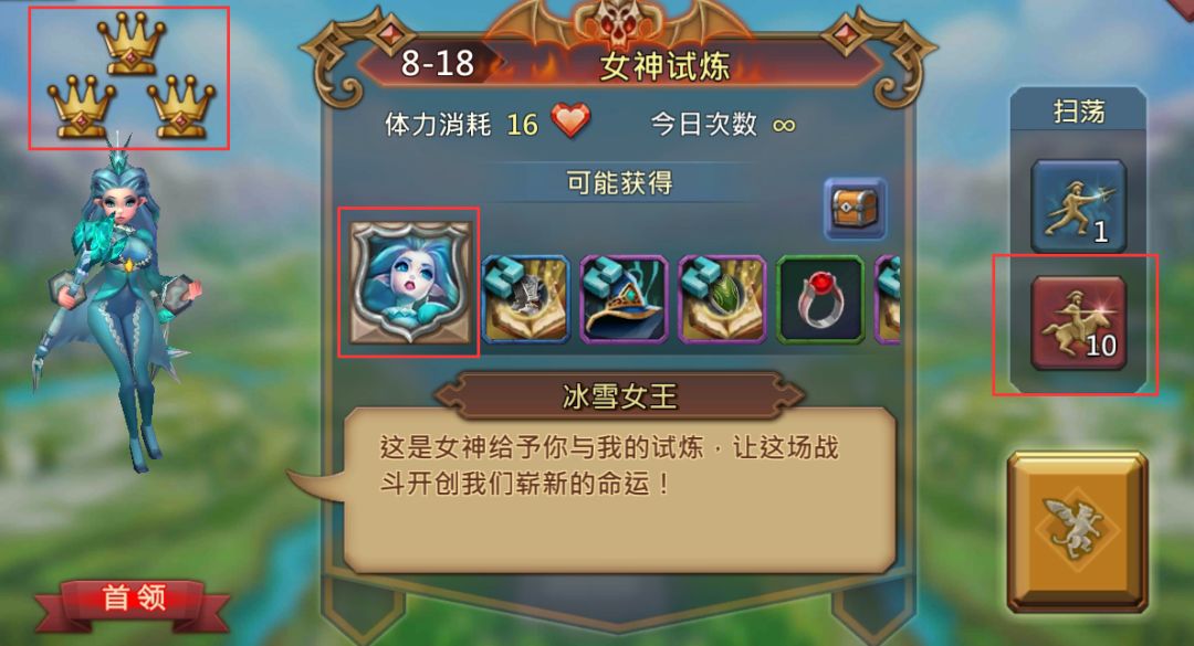 副本中特定的关卡,可以获得英雄碎片,三星通关即可开始使用体力进行扫荡,集齐10个碎片即可招募英雄,也是英雄升级的必要材料。