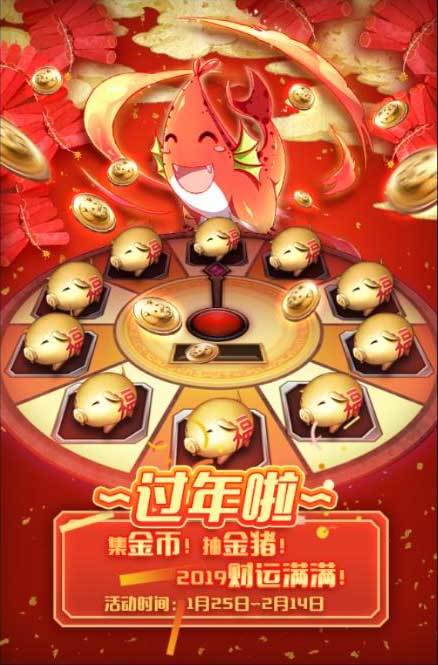 从1月25日开始到2月14日期间,完成各类任务可以获得限定道具“小猪金币”,凭借小猪金币可以在2月5日开启的转盘活动中摇动新春转盘,赢取数量不等的新年金猪。