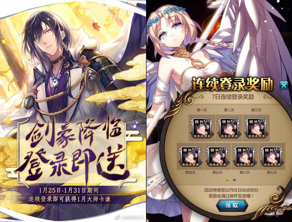 在1.25-1.31期间,保持连续登录即可每天获得一月份大师卡-谦的角色碎片,在第七天时累计可以获得200枚谦的角色碎片。