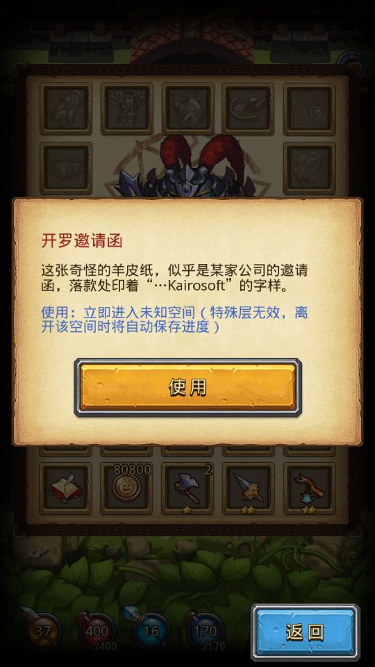邀请函在村外使用 ,进去后没有战斗。一直和开罗姬对话就行。自己研究一下吧。会拿到随机奖励???具体是不是随机也不知道,不过你做出来的游戏收到的反馈的好坏决定你奖励的好坏。我最好是拿到六块开罗姬碎片 ,最差是三千冒险币