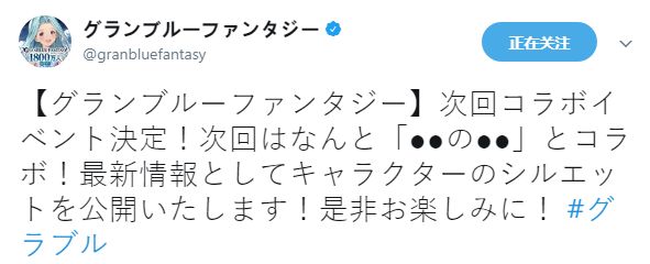今日,《碧蓝幻想》在官方推特上透露,继《魔卡少女樱》和《刀剑乱舞》之后,下一次联动活动的对象也已经决定是《〇〇の〇〇》,并公开了一张剪影图供玩家猜测。