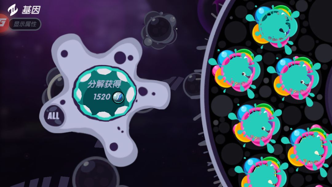 大概一秒后会跳出我标注的这个派大星,点击会跳出如下界面,你就可以随意分解不需要的基因了