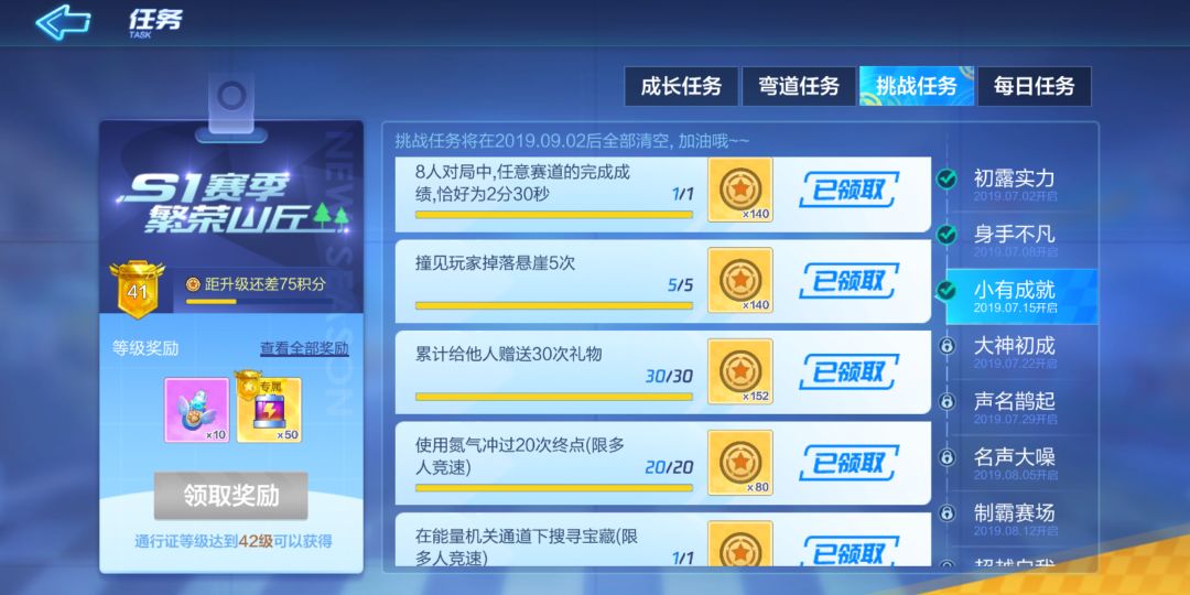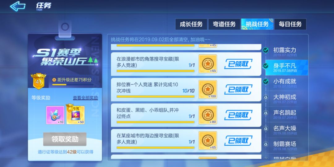 S1赛季通行证挑战任务 1~3章的