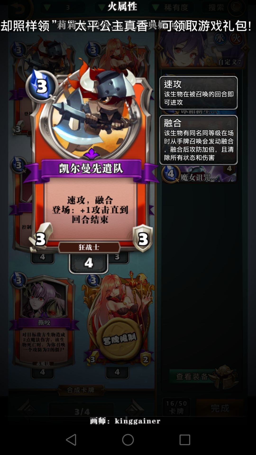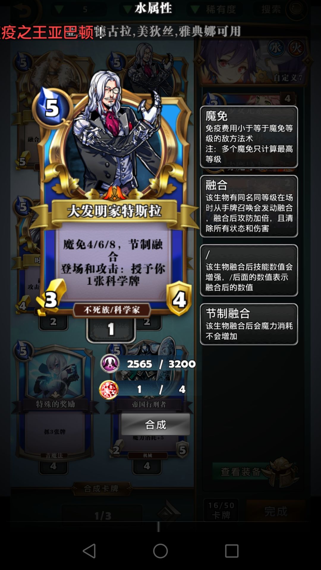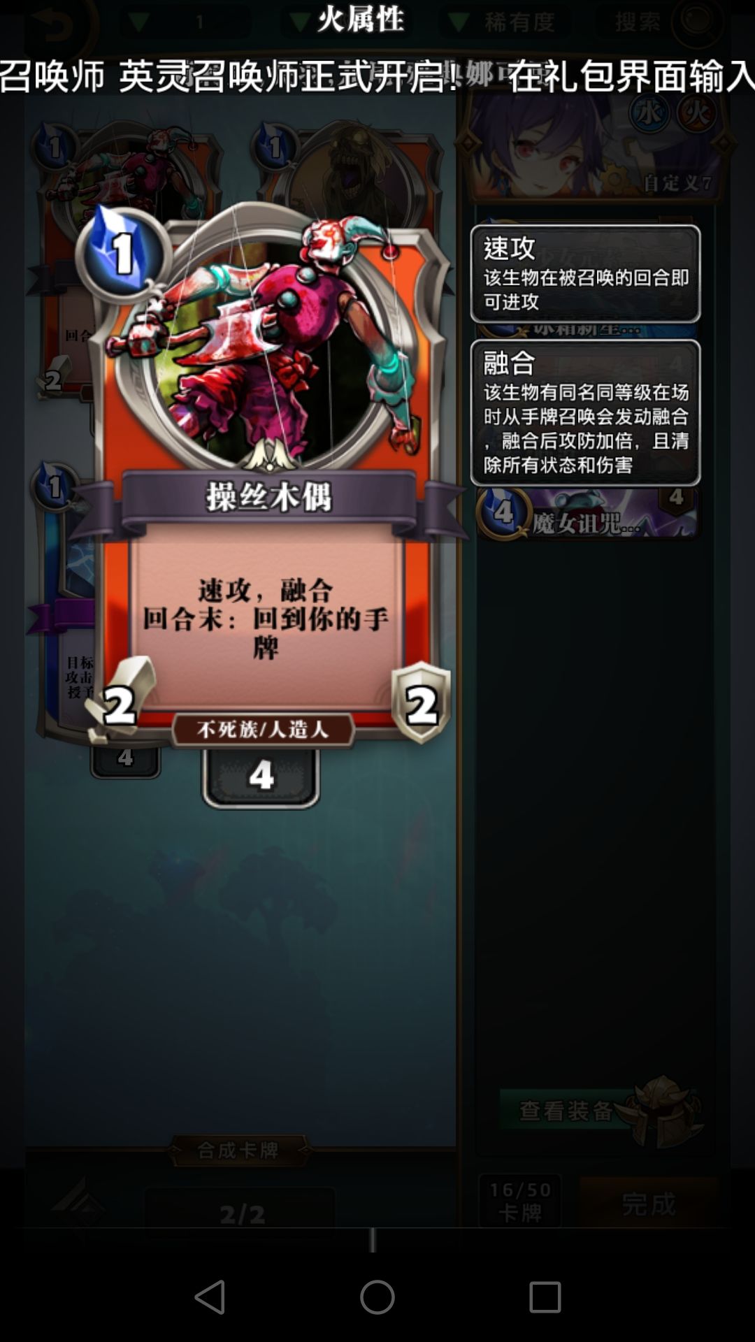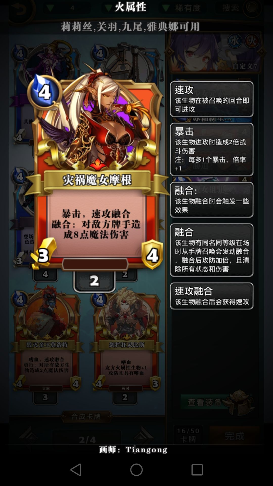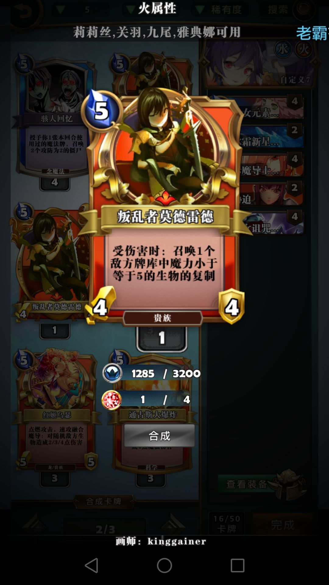 四费生物为什么选择毁灭公爵?速攻融合+嗜血+小aoe。为什么不用摩根和17号?一张摩根肯定不如一张有嗜血的毁灭公爵,只有两张摩根不是很容易融合。17号这个牌吧。。。一言难尽,3-4的身材容易被白吃,就算冻住了也要交额外法术去解。这个特效。。。唉,我下个贵女不朽了,唉,我又拍个米迦勒的又守护不朽了还顺便把贵女拿回去了,唉,下回合我又不朽了。改成随机随从洗回牌库我可能才会考虑为了这个特效带17号。莫德雷德是抗快攻的带忠臣,龙姬能给龙,龙是好东西。