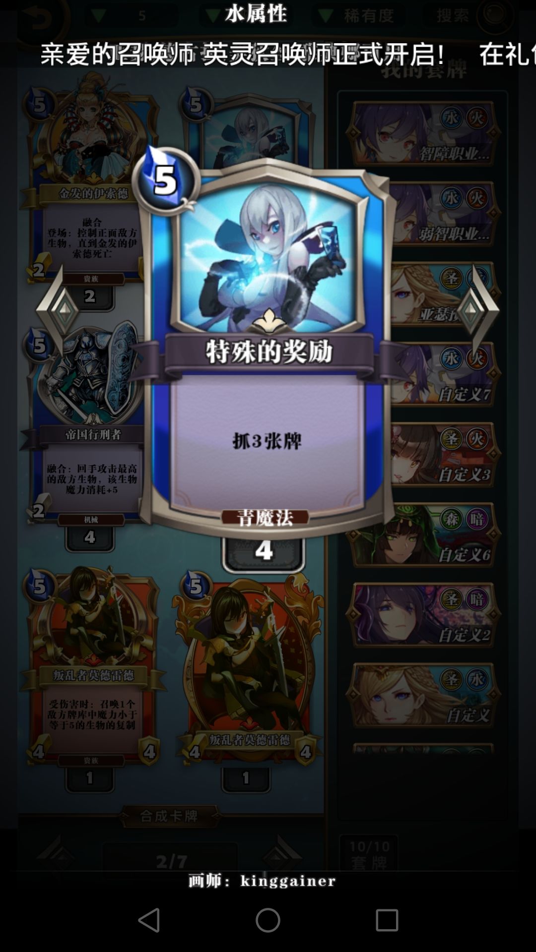 因为雅典娜除了海怪,梅林和呱魔女并没有啥高费质量生物,建议你使用对面的。