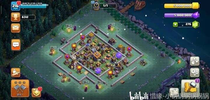 中置大本 内置的巨石大电以及援军防守野猪能力很强 整体防御能力不错 较怕空军