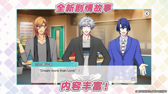 比如“歌王”系作中的人气角色“卡缪”,表面高傲冷漠,其实对朋友、后辈满含关心,会对其暗中帮助指点。王子型的外形华丽绅士,出身于伯爵家族的他,骨子里带着一种对国家女王的敬爱。热爱甜食、随身有白色爱犬,与前辈组的黑崎兰丸性格不合,却又和后辈里的神宫寺莲互相欣赏。不需要过多的剧情代入,单展示他说话的语句,细节的眼神和爱唱的歌曲,这个形象的塑造,让人相信他很可能此刻就坐在巷尾的那家甜食店。