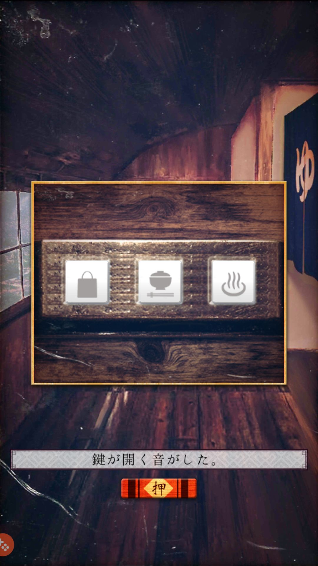 (廊下)通过纸片上的图知道窗户上的纸片后有钥匙,拿到钥匙。