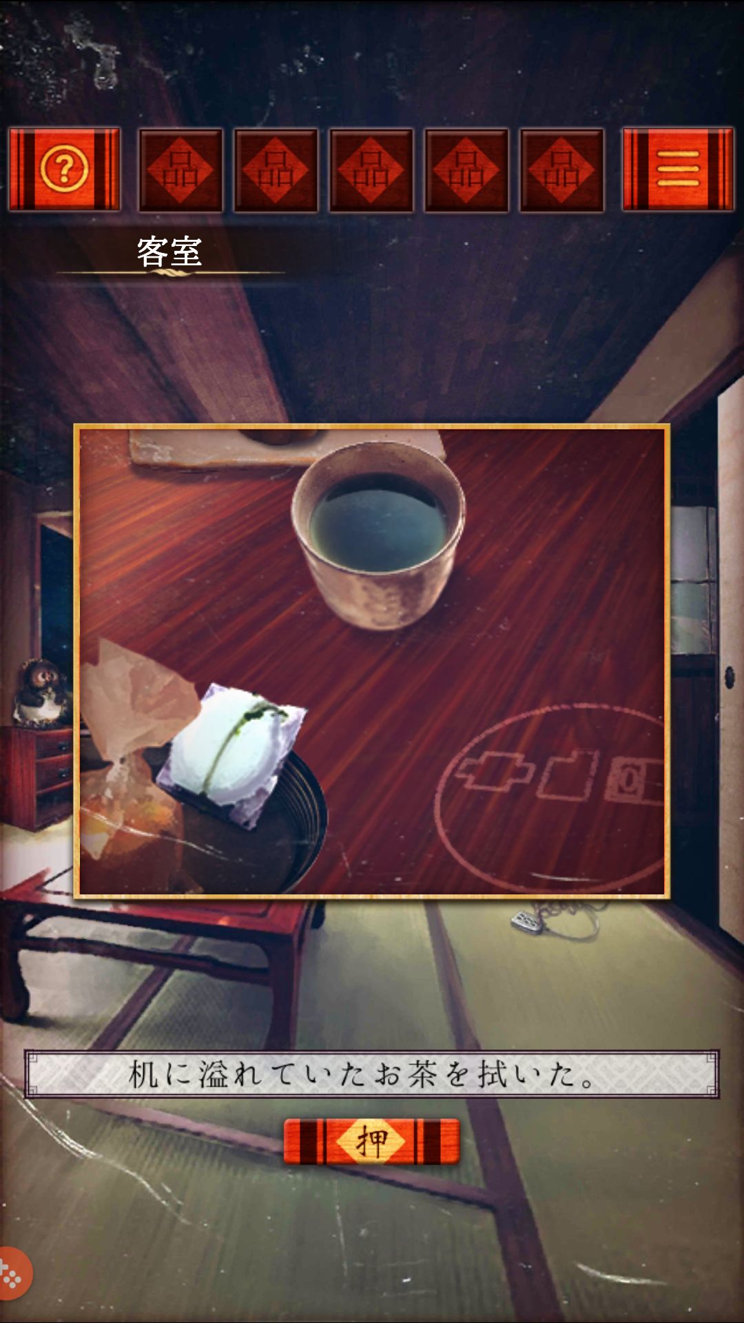 (客室)记住红桌上和菓子的位置。