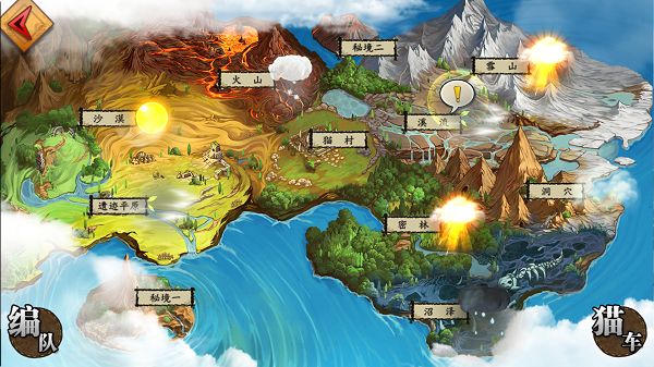 沙漠位于喵村西部内陆地区,由于深居内陆,并且受到北面活火山的影响,这片地区常年干旱少雨而且异常炎热,让这片地区迅速沙化,形成了一望无际的沙漠地区。虽然这片不毛之地环境恶劣,但依然生活着一些奇妙的怪兽。